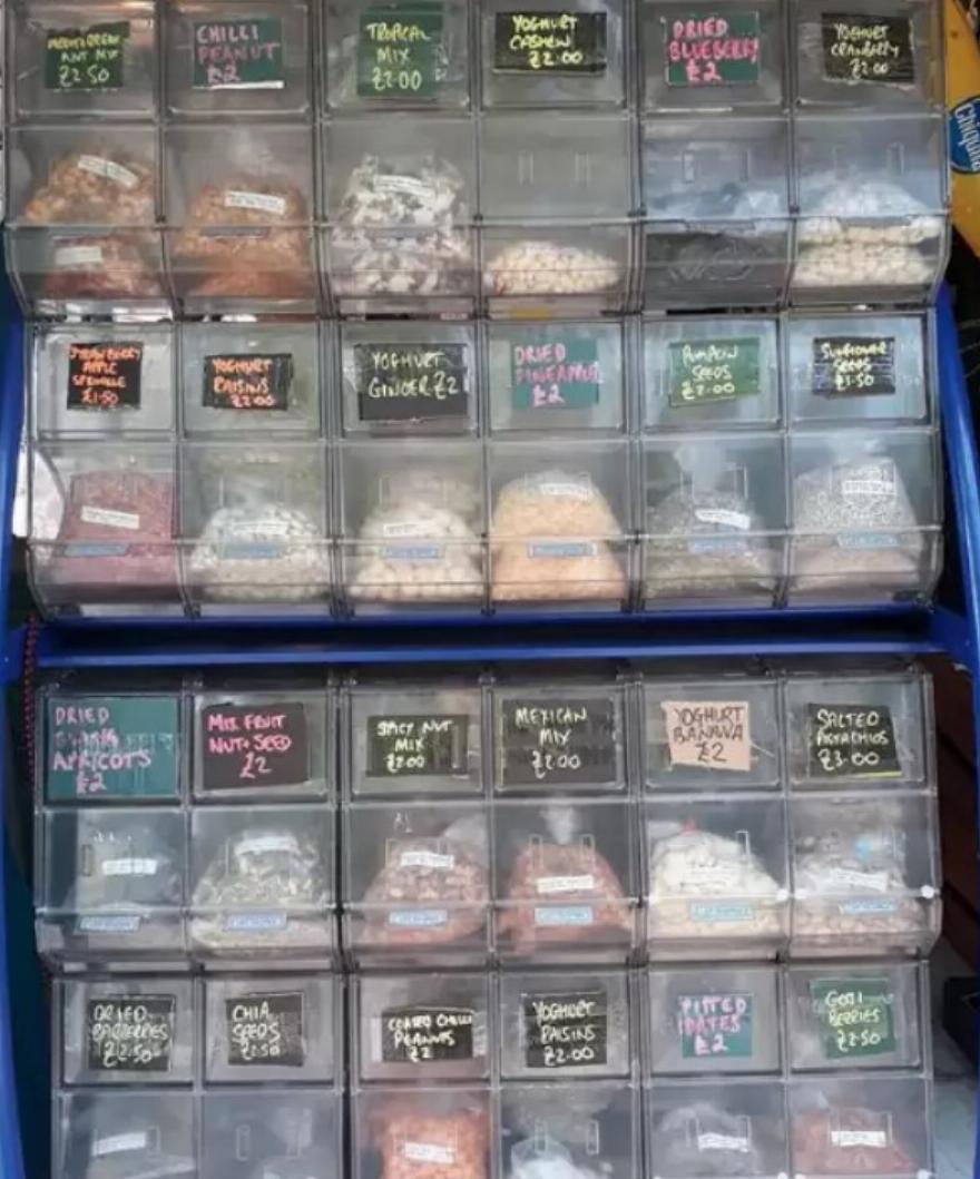 Στα άλλα κουβούκλια, οι ξηροί καρποί είναι όλοι σε σακούλες, ενώ οι ξηροί καρποί στο κουβούκλιο του Μπέρτον είναι χαλαροί και μπορούν εύκολα να πιαστούν. Αυτό προφανώς ήταν αρκετό για να τον κρατήσει από το να ξεστρατίσει σε τρόφιμα που προορίζονται για πώληση.