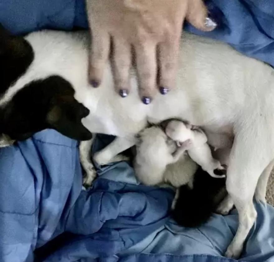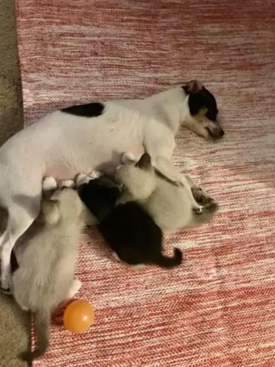 Η Jones είχε μόλις αναλάβει τη γλυκιά σκυλίτσα, όταν η διάσωση τηλεφώνησε και τη ρώτησε αν θα μπορούσε επίσης να αναλάβει και να ταΐσει με μπιμπερό τρία νεογέννητα γατάκια που είχαν χάσει τη μητέρα τους.