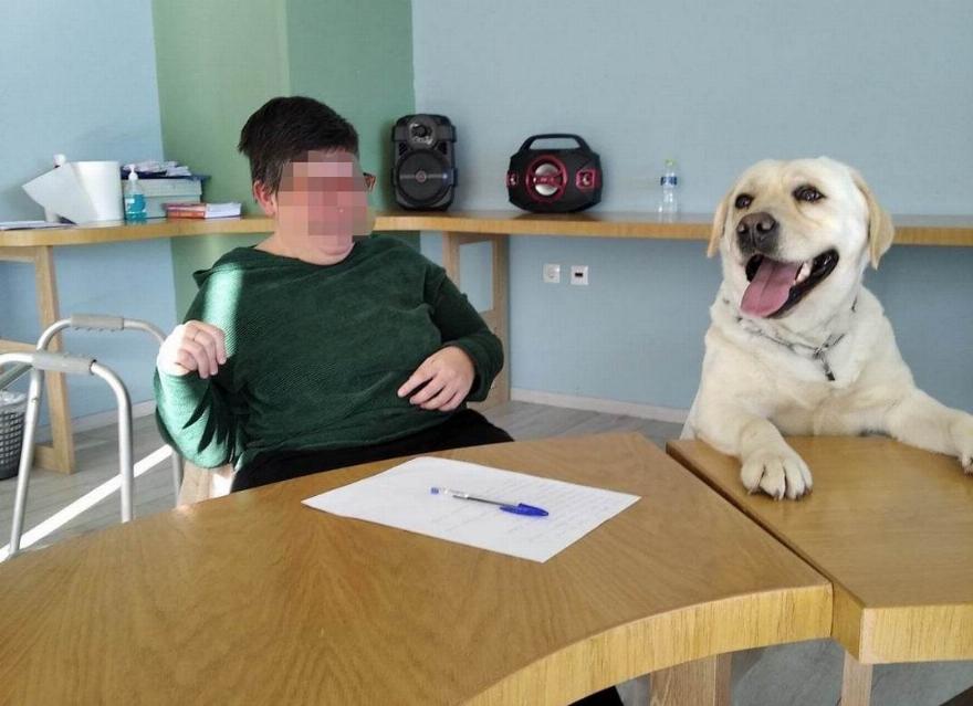 «Για τον μικρό Γιώργο που έχει ημιπληγία, ο σκύλος αποτελεί ένα κίνητρο για να χρησιμοποιήσει το ημιπληγικό χέρι του με «σκοπό» να τον κάνει μπάνιο, να τον χτενίσει και να τον σκουπίσει», σημειώνει.
