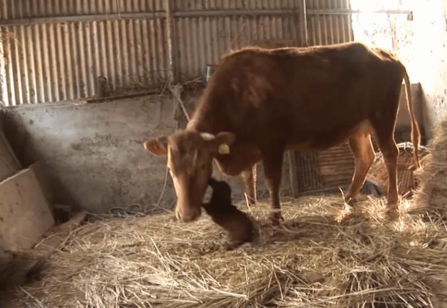 Αφού έχασε τη μαμά του, το σκυλάκι άρχισε να περνάει περισσότερο χρόνο στον αχυρώνα, όπου έγινε φίλος με τις αγελάδες που ζούσαν εκεί. Σύντομα ο Rookie συνδέθηκε πολύ με μία από τις αγελάδες, η οποία με τη σειρά της αποφάσισε να τον “υιοθετήσει” ως γιο της.