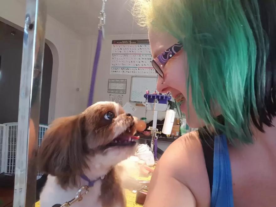 Τα τελευταία τρία χρόνια, αυτό το γλυκό κουτάβι με το όνομα Muffin κουρεύεται από τη Lisa Granade, ιδιοκτήτρια του Happy at Home Pet Grooming στην Ουάσινγκτον. Σε αυτό το διάστημα, οι δύο τους έχουν δημιουργήσει μια αξιολάτρευτη φιλία.