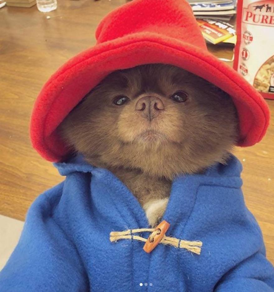 Με το κόκκινο τσόχινο καπέλο του, το μπλε παλτό του και τις κίτρινες μπότες βροχής, ο Μπέρτραμ ο Πομερανιανός θέλει να κερδίσει το Χάλοουιν ως Πάντινγκτον ο Αρκούδος!