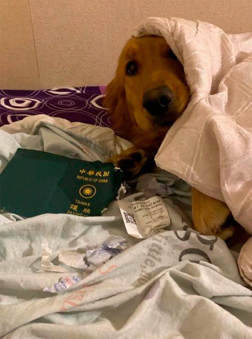 Η ιδιοκτήτρια, μια Ταϊβανέζα, δημοσίευσε μια μεγάλη σειρά φωτογραφιών στο προφίλ της στο Facebook, όπου εξιστόρησε την «απερίσκεπτη» ενέργεια του Γκόλντεν Ριτρίβερ της, που έφαγε κυριολεκτικά το διαβατήριό της και εξήγησε ότι είχε ήδη κλείσει την πτήση από την Ταϊβάν για τη Γουχάν, η πόλη της Κίνας που έγινε το επίκεντρο του κορωνοϊού.
