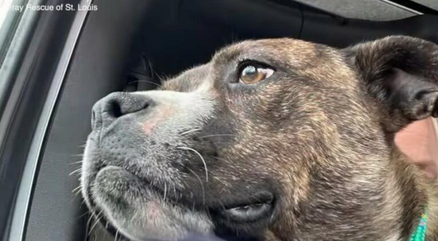 Μόλις μπήκαν στο αυτοκίνητο, ο σκύλος ακούμπησε το κεφάλι του στον ώμο της διασώστριας, ευχαριστώντας την που της έσωσε τη ζωή.