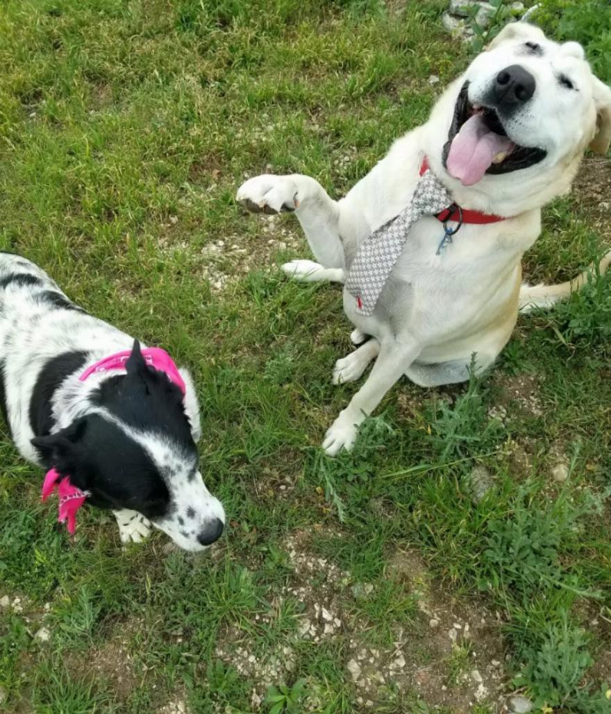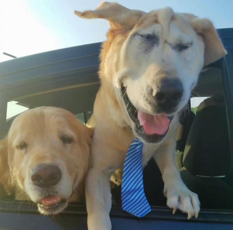 Ο 6χρονος πλέον σκύλος απέκτησε επίσης έναν μεγαλύτερο αδελφό, τον Riley, ένα 13χρονο μίγμα γκόλντεν ριτρίβερ, ο οποίος του έμαθε τι σημαίνει να είσαι μέσα στο σπίτι.