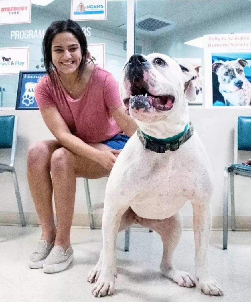 “Με το που μπήκε στο χώρο των επισκεπτών, έτρεξε αμέσως προς το μέρος μου και έβαλε το μεγάλο χαριτωμένο κεφάλι του ακριβώς στην αγκαλιά μου και μπορούσα να πω ότι ήταν τόσο ερωτευμένος”, είπε η Spenia. “Έπρεπε να τον πάρω!”