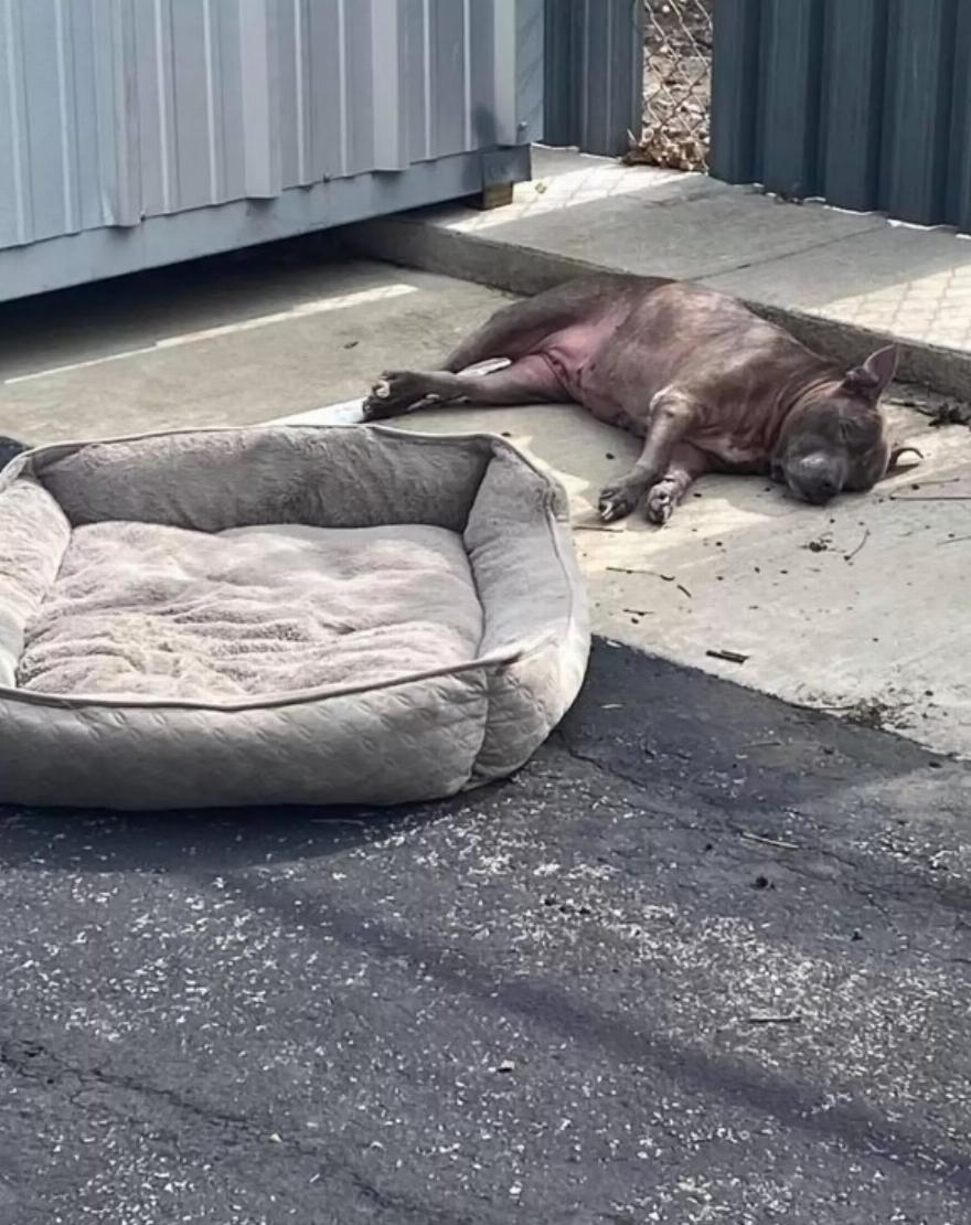 Σε ένα άδειο πάρκινγκ στο Όστιν του Τέξας, ένας σκύλος με το όνομα Bluebelle περίμενε υπομονετικά να τον προσέξει κάποιος. Το ηλικιωμένο pittie δεν είχε τίποτα άλλο εκτός από το κρεβάτι του σκύλου της για να τη χωρίσει από το καυτό πεζοδρόμιο.