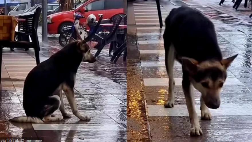 Το viral βίντεο του TikTok δείχνει τον χαμένο σκύλο να κάθεται έξω από ένα κατάστημα στο Sembilan της Μαλαισίας ενώ έβρεχε καταρρακτωδώς.