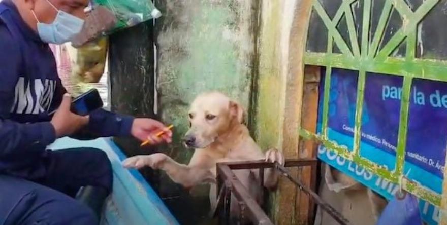 Τα μέλη της Μαρίνας έψαχναν με βάρκες για παγιδευμένους κατοίκους στην περιοχή Ταμπάσκο στις 13 Νοεμβρίου 2020. Ο σκύλος ήταν προσκολλημένος σε ένα μεταλλικό κουτί παραθύρου έξω από ένα σπίτι. Μόλις η βάρκα έφτασε δίπλα του, ο σκύλος που έτρεμε υποδέχτηκε μερικά χάδια και μια λιχουδιά από έναν από τους άνδρες που ήταν εκεί για να τον σώσουν.