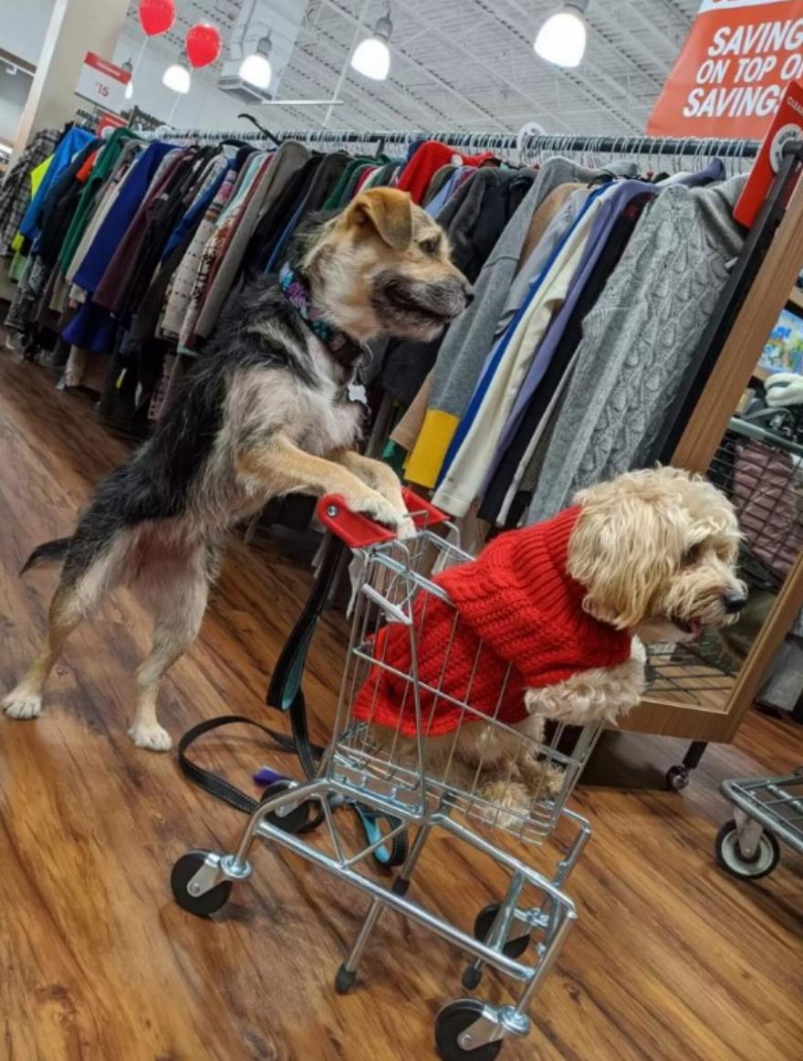 Το μεγάλο, φιλικό προς τους σκύλους κατάστημα ήταν το ιδανικό μέρος για να κοινωνικοποιηθεί η Heaven και το κουτάβι ήταν τόσο καλό κορίτσι στις επισκέψεις της που κέρδισε τη δική της μικρή ποδιά υπαλλήλου.