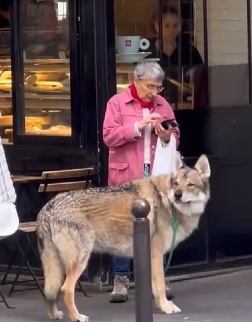 Περπατώντας στους δρόμους του Παρισιού με έναν λύκο με λουρί, οι εικόνες που παρουσιάζονται ξεγελούν και τις θαυμάζουν όλοι.