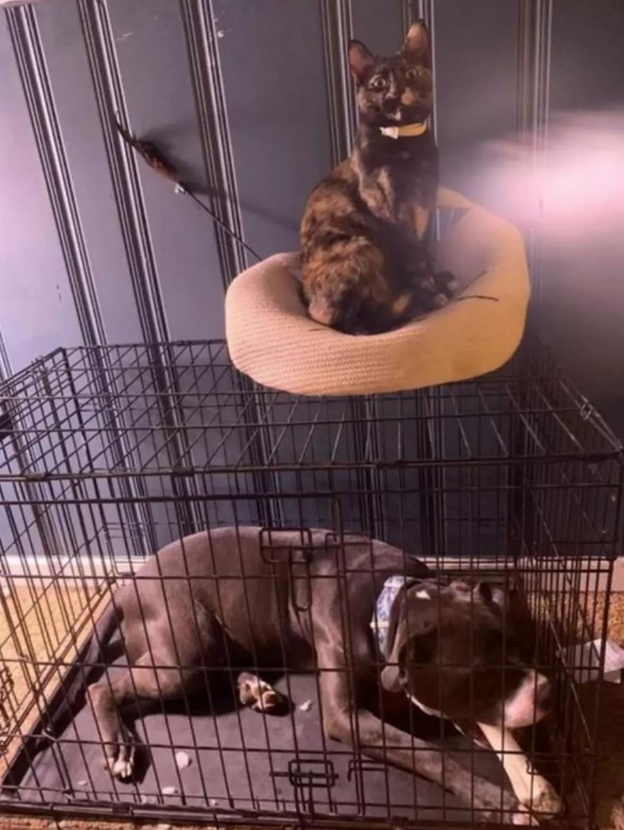 @bethdc7 Ohhhh Winston 🤦🏻♀️🤌🏻 #pitbull #purr #cat #catsoftiktok #catdog ♬ original sound – Beth Clark