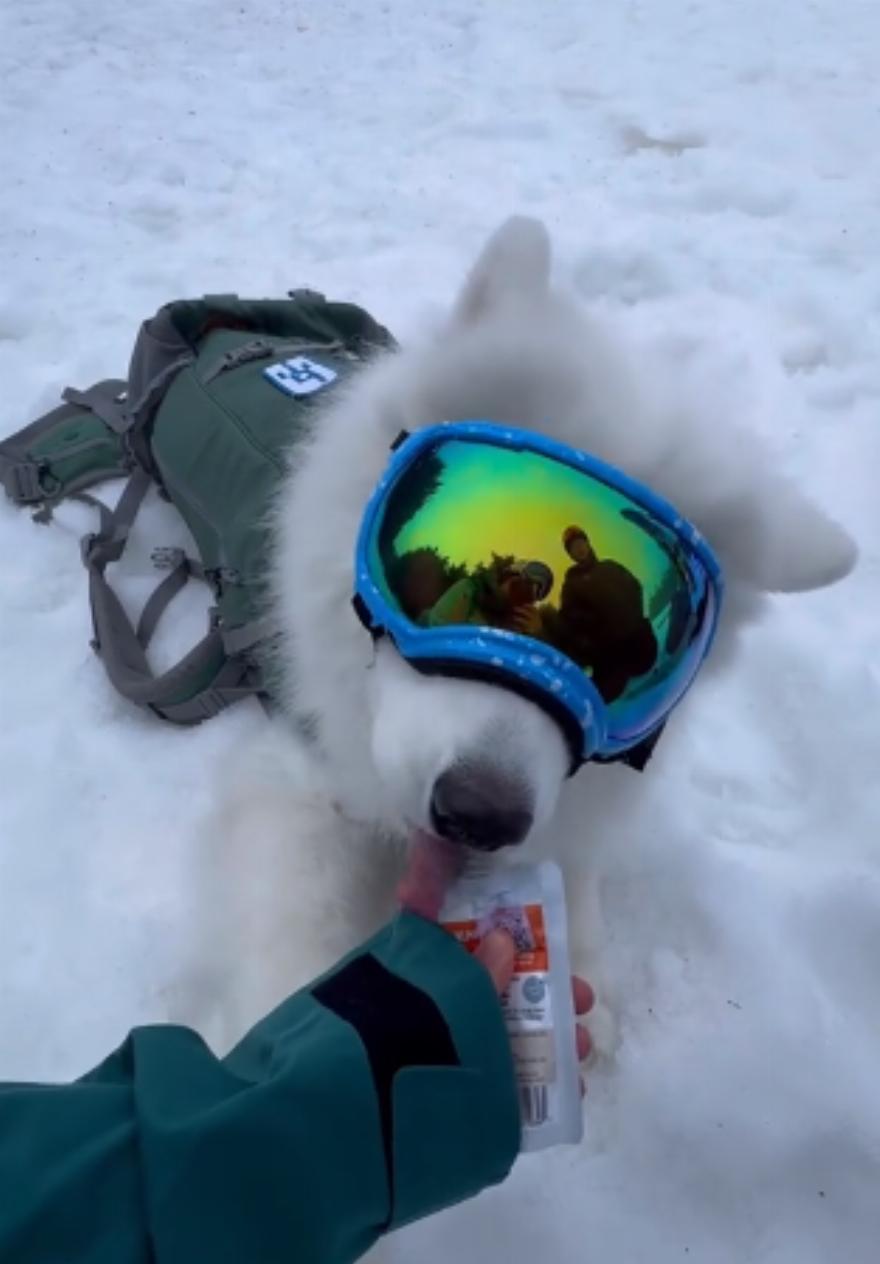 @littlebearlumi Come ski with me and my dog! 🎿 #fyp #ski #viraldog #samoyed #snowdog ♬ original sound – littlebearlumi