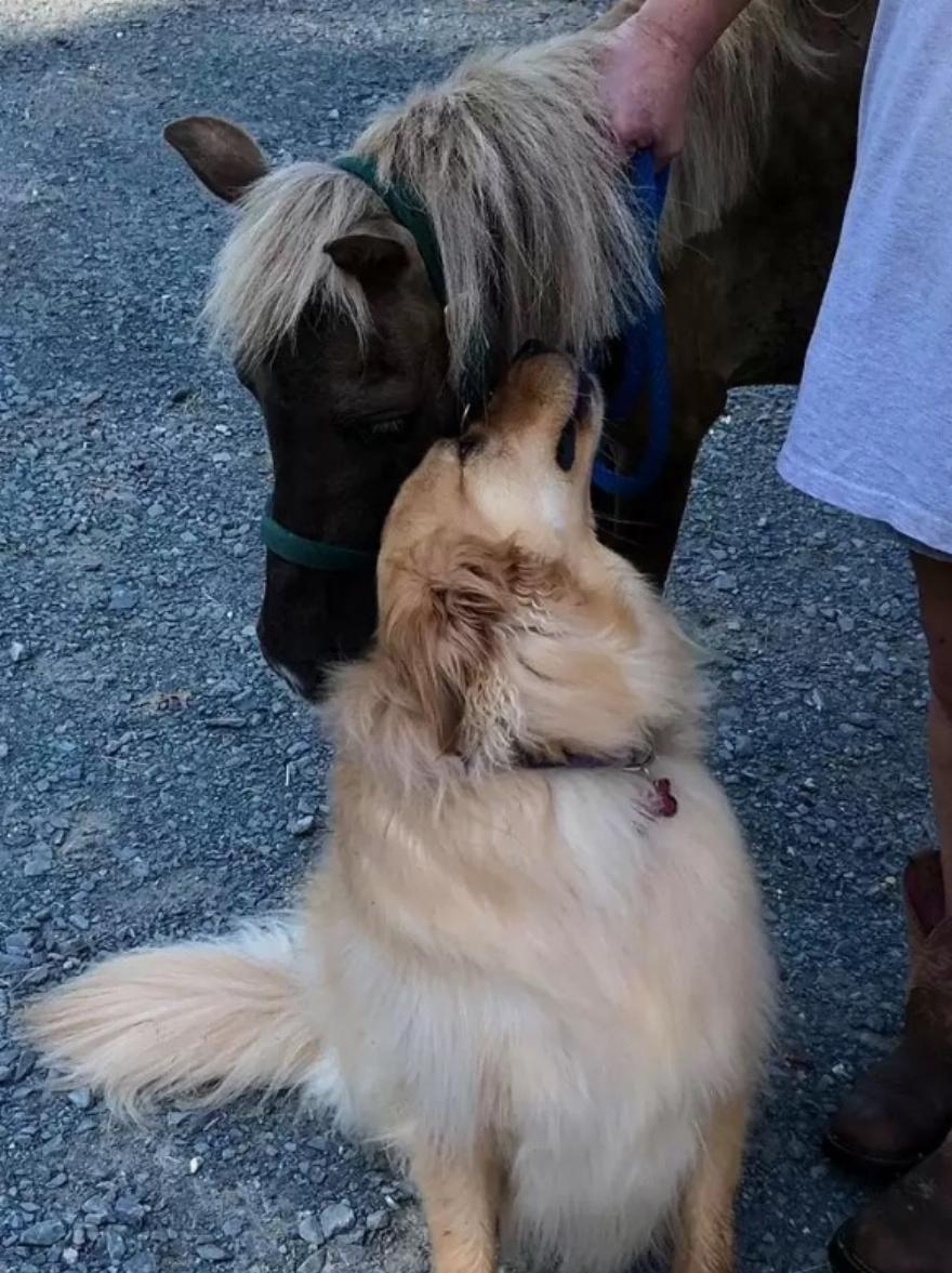Σκύλοι, γάτες, γουρούνια, κατσίκες, άλογα – το χρυσό ριτρίβερ τα αγαπά όλα και φροντίζει ώστε κάθε νέα άφιξη στο καταφύγιο να γνωρίζει ότι έχει κάποιον στο πλευρό της από την πρώτη μέρα.