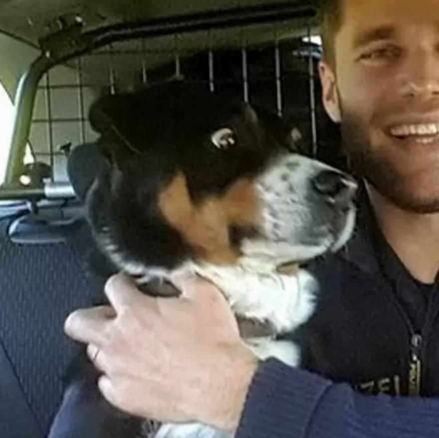 Ο σκύλος φορτώθηκε στο περιπολικό της αστυνομίας, όπου οι αστυνομικοί τράβηξαν μια φωτογραφία τους να χαμογελούν παρέα με τον αξιολάτρευτο κρατούμενο τους.