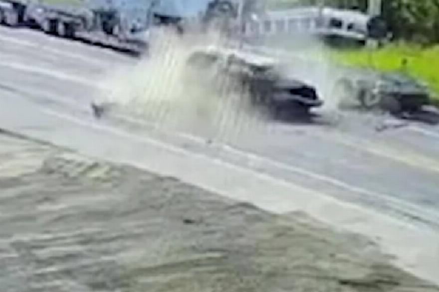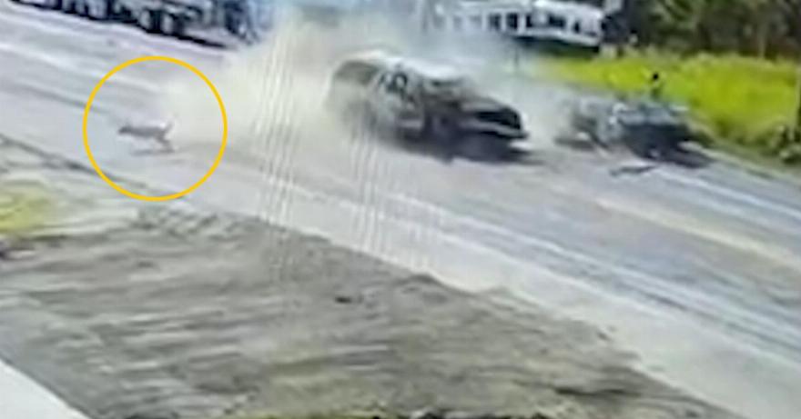 Στο βίντεο, βλέπετε το Tahoe να χτυπάει πάνω στο ρυμουλκούμενο, με αποτέλεσμα αυτό να ανασηκωθεί στα δύο μπροστινά του λάστιχα πριν αναπηδήσει ξανά στο έδαφος. Μέσα σε ένα σύννεφο σκόνης, βλέπετε έναν σκύλο να πετιέται από το Tahoe. Φαίνεται να προσγειώνεται στην πλάτη του πριν σηκωθεί γρήγορα και φύγει τρέχοντας.