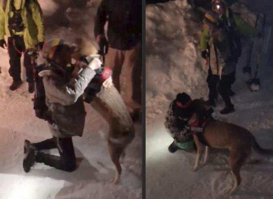 Μια γυναίκα είχε μια συγκινητική επανένωση με τον σκύλο της αφού έπεσε από ύψος 40 μέτρων σε μια χιονοστιβάδα στους καταρράκτες Stewart Falls στο όρος Timpanogos στη Γιούτα.