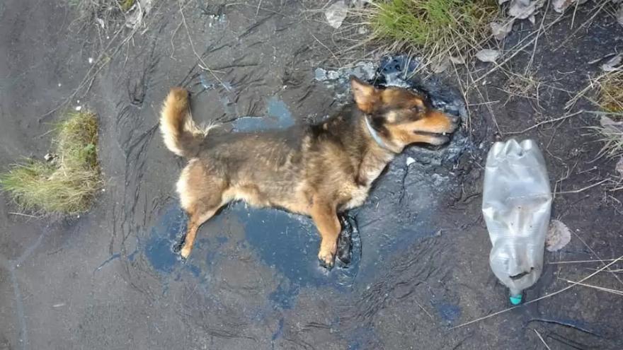 Πιστεύεται ότι ο σκύλος, ίσως εγκαταλελειμμένος, αναζητούσε ζεστασιά όταν έπεσε πάνω στην παράνομα πεταμένη πίσσα – χωρίς να συνειδητοποιεί ότι, όταν ξαπλώσει πάνω της, θα κολλήσει απελπιστικά.