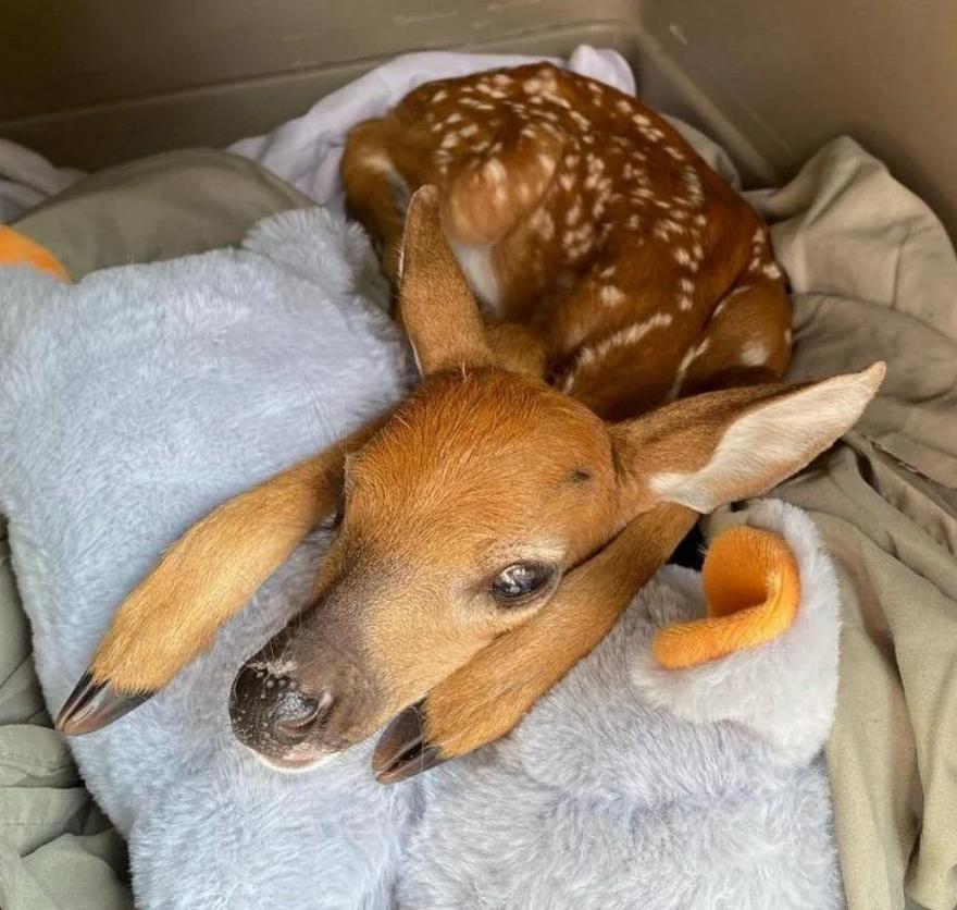 Την ώρα που το ελάφι διασώθηκε, φαινόταν αφυδατωμένο, σημάδι αρκετό για να μάθουν οι εθελοντές ότι ο μικρός βρισκόταν στην άκρη του δρόμου για περίπου 24 ώρες. Ευτυχώς έφτασε βοήθεια, γιατί αν όχι, το ελάφι θα είχε την ίδια μοιραία μοίρα με τη μητέρα του.