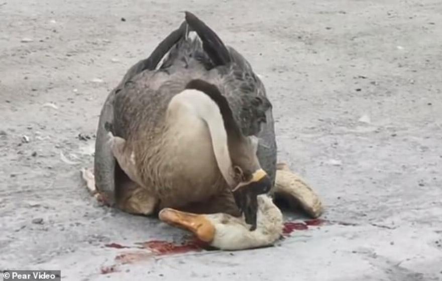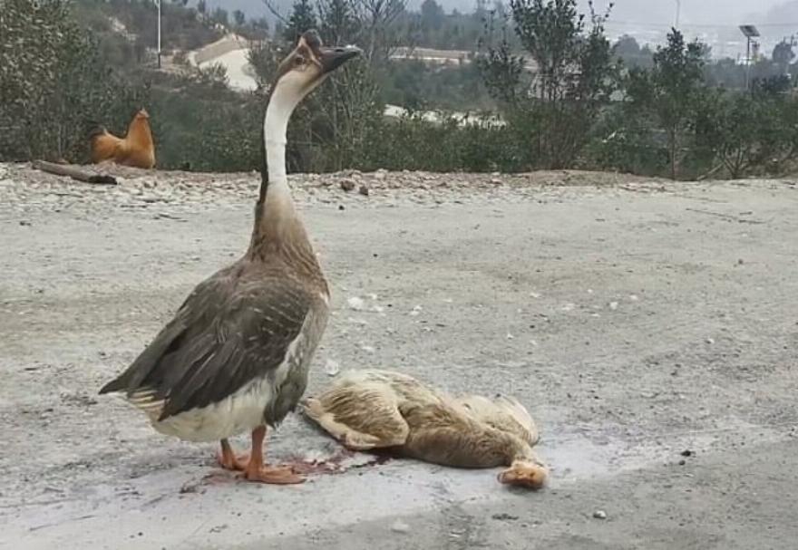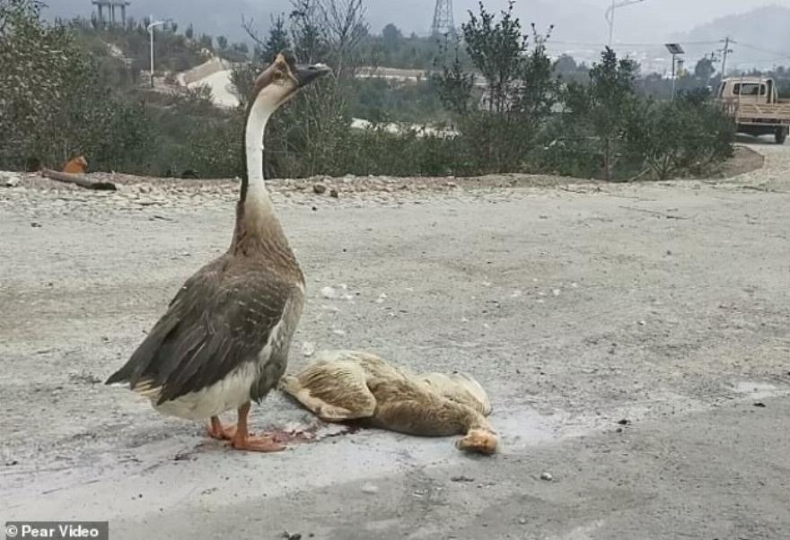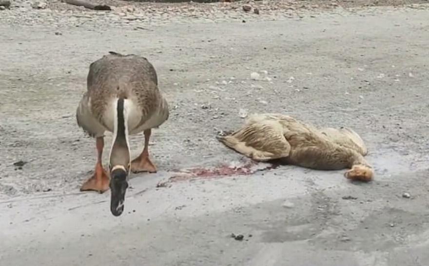 Η συγκινητική στιγμή που η αρσενική χήνα προσπαθεί απεγνωσμένα να ξυπνήσει τη σύντροφό του σπρώχνοντας το κεφάλι της με το ράμφος της κάνει τους χρήστες του διαδικτύου να δακρύσουν.