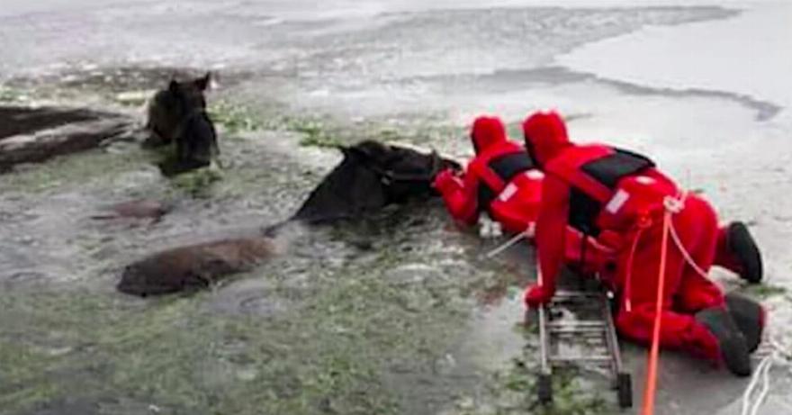 Ευτυχώς, η κοινότητα και πολλά τμήματα συνεργάστηκαν προσπαθώντας να απελευθερώσουν τα άλογα. Λόγω του ότι δεν είχαν τον κατάλληλο εξοπλισμό, χρησιμοποίησαν θερμάστρες, κουβέρτες και μια βάρκα από γείτονες.