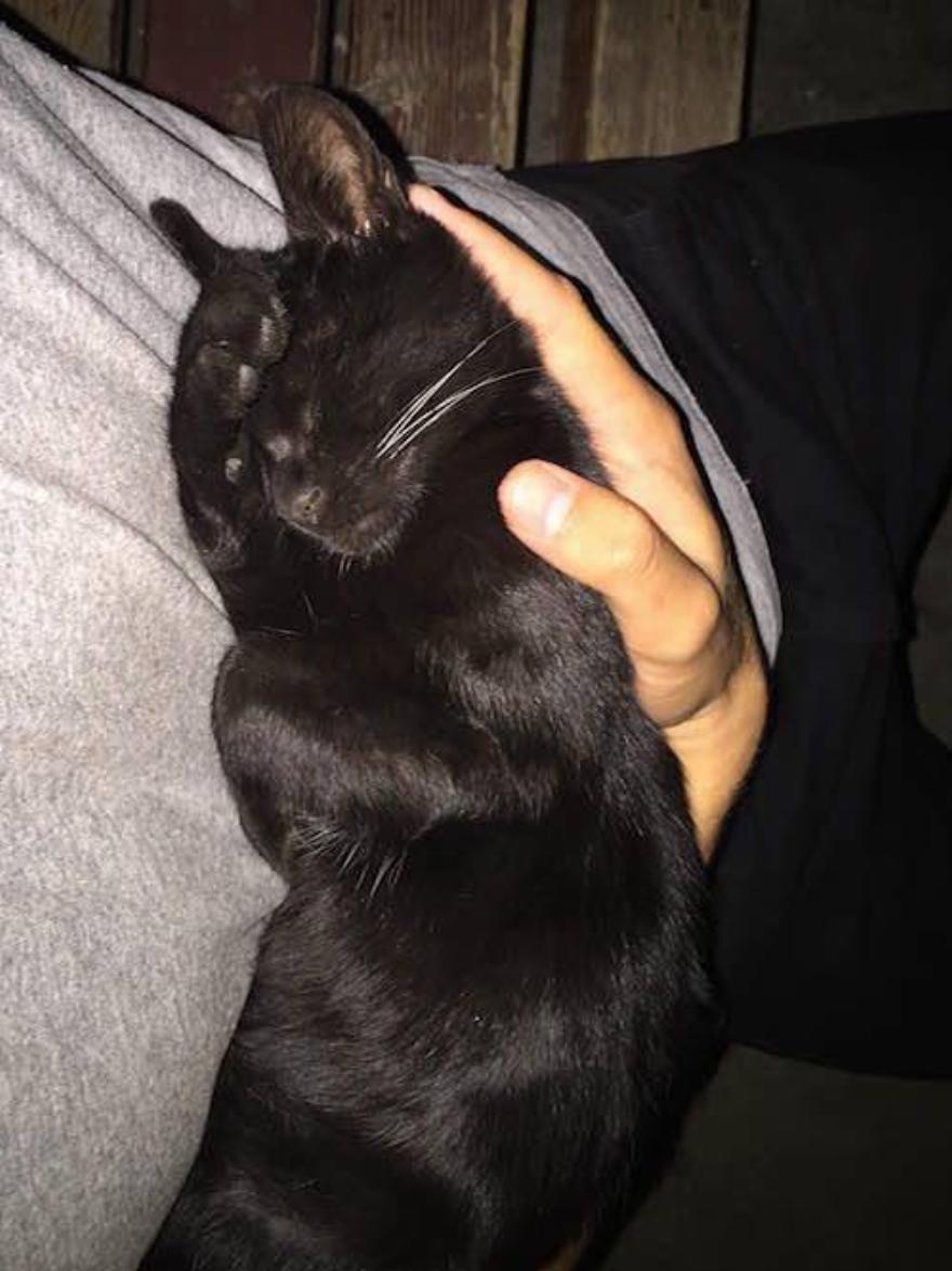 Καθώς ήταν στρατιώτης στη Ρουμανία, ένα μικροσκοπικό μαύρο γατάκι με λευκά μπαλώματα στο στήθος τράβηξε την προσοχή του Justin.