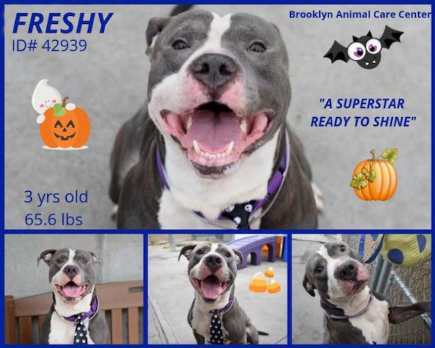 “Ο Freshy λατρεύει να τον αγκαλιάζουν και να τον κρατούν, απολαμβάνει αργές βόλτες στη γειτονιά και τα αγαπημένα του παιχνίδια περιλαμβάνουν το φέρετρο και το τράβηγμα. Όταν πρόκειται για πράγματα που θα αναζητούσατε σε έναν σκύλο, ο Freshy φαίνεται να ελέγχει όλα τα κουτάκια. Το μόνο άδειο κουτί που έχει είναι ένα ευτυχισμένο, αγαπημένο σπίτι. Θα μπορούσε να είναι το δικό σας;”