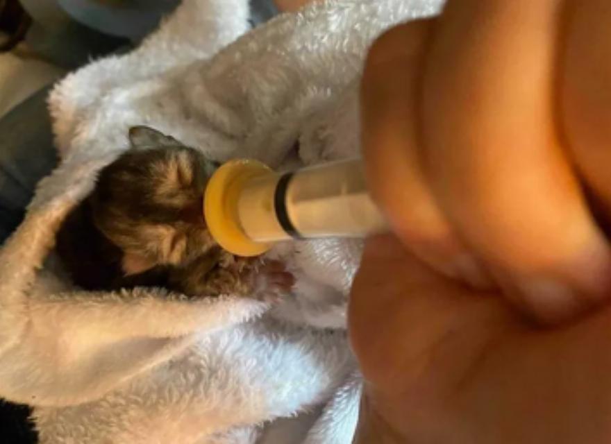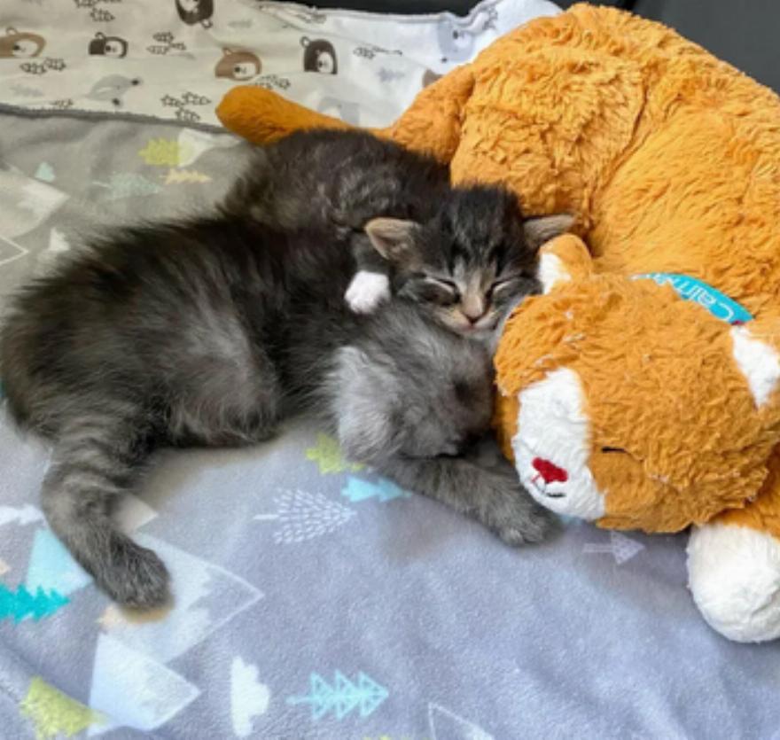 Η Paula, μια εθελόντρια, τα πήρε αμέσως και άρχισε να τα φροντίζει όλο το εικοσιτετράωρο. Παρά τις φιλότιμες προσπάθειές της να τα σώσει, το γκρίζο γατάκι, η Monique, ήταν το μοναδικό που επέζησε.