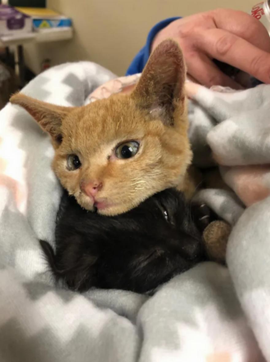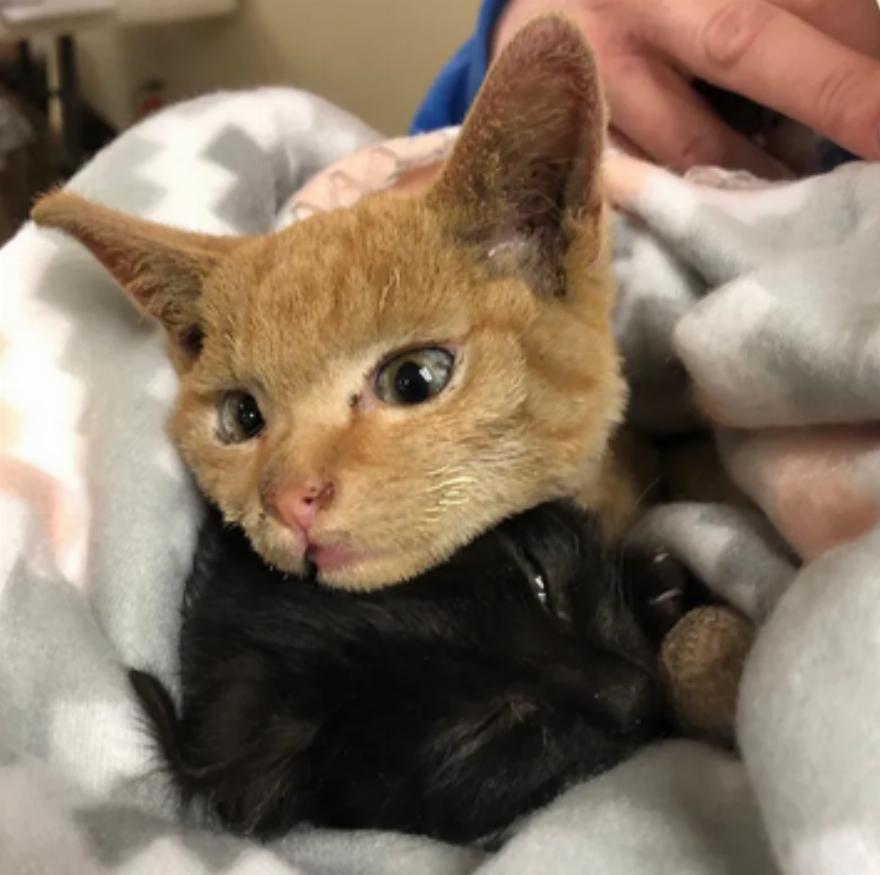 Τα δύο γατάκια είναι σε φάση ανάρρωσης. Ο Phoenix βρίσκεται πάνω από τον μικρό του αδελφό, φροντίζοντας να είναι ασφαλής και αγαπητός. Είναι αχώριστα.