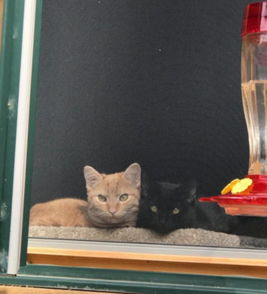 Το προσωπικό ονόμασε τα γατάκια Ash (μαύρο) και Phoenix (πορτοκαλί). Ο Ash είναι το μικρότερο από τα δύο και ο Phoenix είναι ένας μικρός προστάτης.