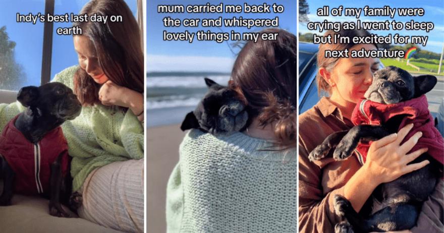 Η χρήστης του TikTok Holly Sheddan μοιράστηκε πρόσφατα ένα βίντεο που καταγράφει πώς πέρασε την τελευταία μέρα με το γαλλικό μπουλντόγκ της, την Indy. Στο βίντεο, το οποίο έχει προβληθεί πάνω από 12,3 εκατομμύρια φορές, η Sheddan μοιράζεται “την καλύτερη τελευταία μέρα του Indy στη γη”.