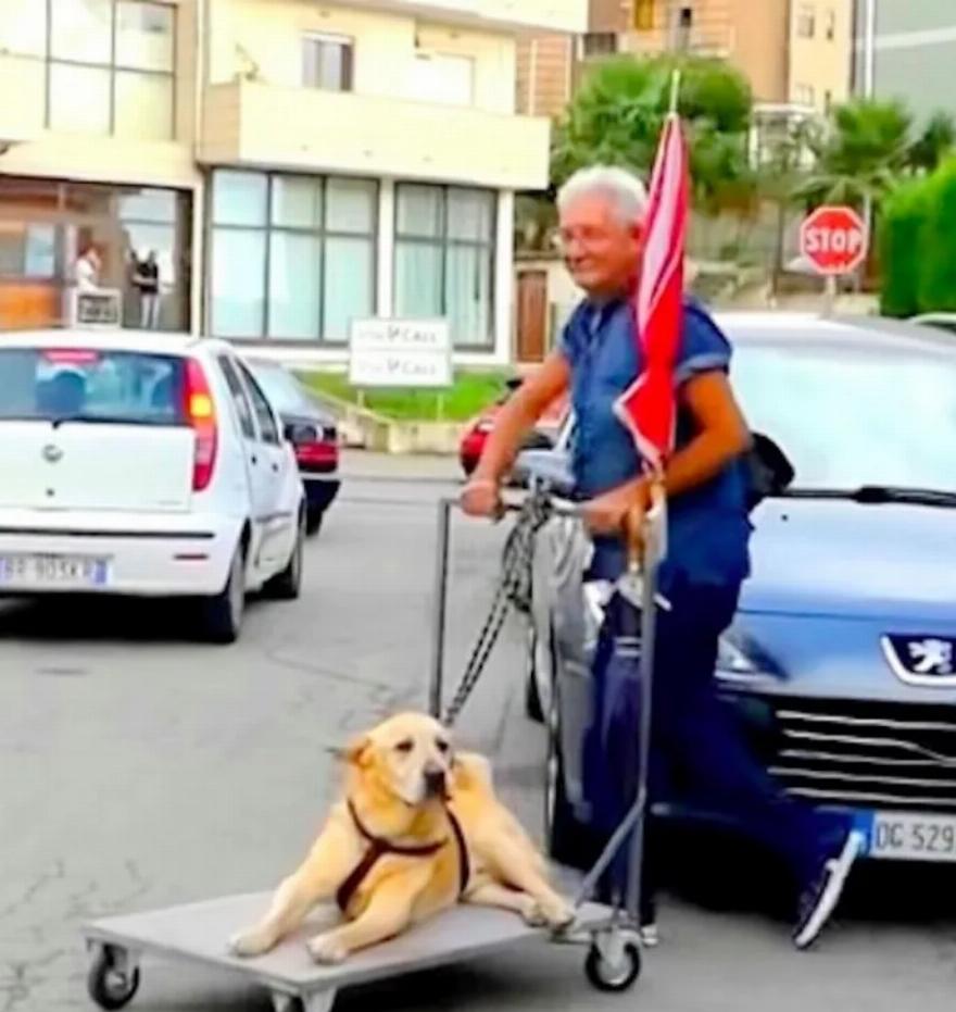 Η αγάπη και η αφοσίωση που δείχνει ο Vitale στο κουτάβι του δεν πέρασε απαρατήρητη, και ένας από τους γείτονές του κατάφερε μια μέρα να τραβήξει ένα βίντεο με το γλυκό ζευγάρι.