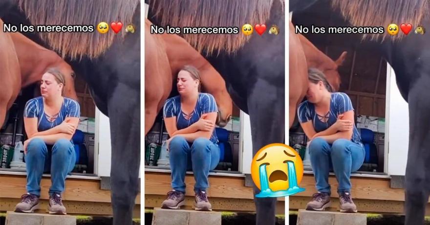 Το βίντεο αναρτήθηκε στο TikTok με τη λεζάντα “Δεν τους αξίζουμε” και δείχνει πώς το άλογο Shiner αντιλήφθηκε ότι η Shania έκλαιγε και σιγά-σιγά την έσπρωξε προς το σώμα του και έβαλε το κεφάλι του στην πλάτη της- φαινόταν ότι την αγκάλιαζε για να την παρηγορήσει και να προσπαθήσει να την ηρεμήσει.
