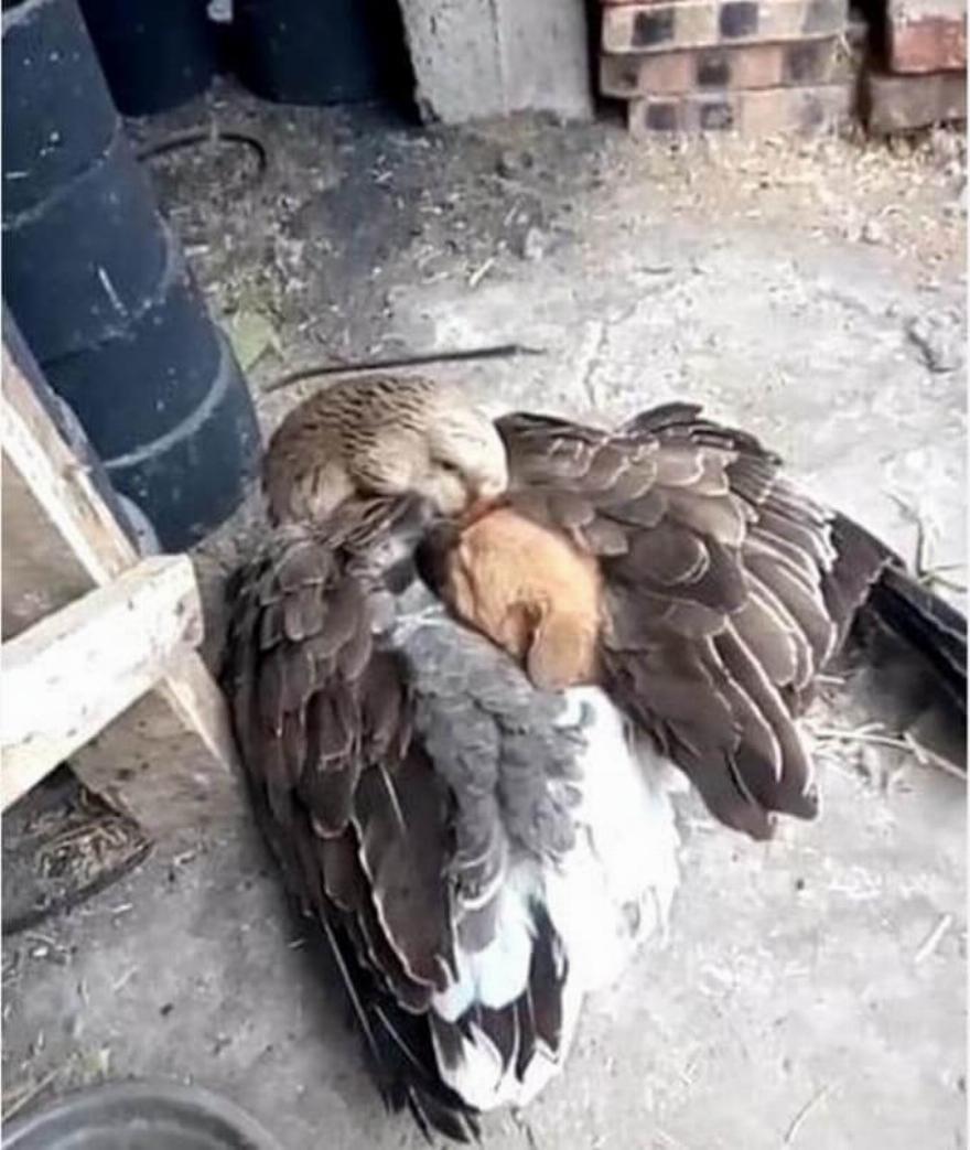Τύλιξε το κουτάβι με τα φτερά της για να το προστατέψει από την παγωνιά. Η προσπάθειά της, πίστευε ότι θα το κρατούσε ζωντανό.