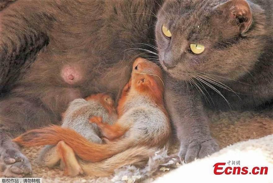 “Μια όμορφη μέρα, οι επισκέπτες μας έφεραν αυτά τα υπέροχα σκιουράκια σε ένα κουτί. Εκείνη την εποχή, η γάτα μας μόλις είχε γεννήσει”, δήλωσε στο Ruptly η Olga Fateeva, υπάλληλος του πάρκου.