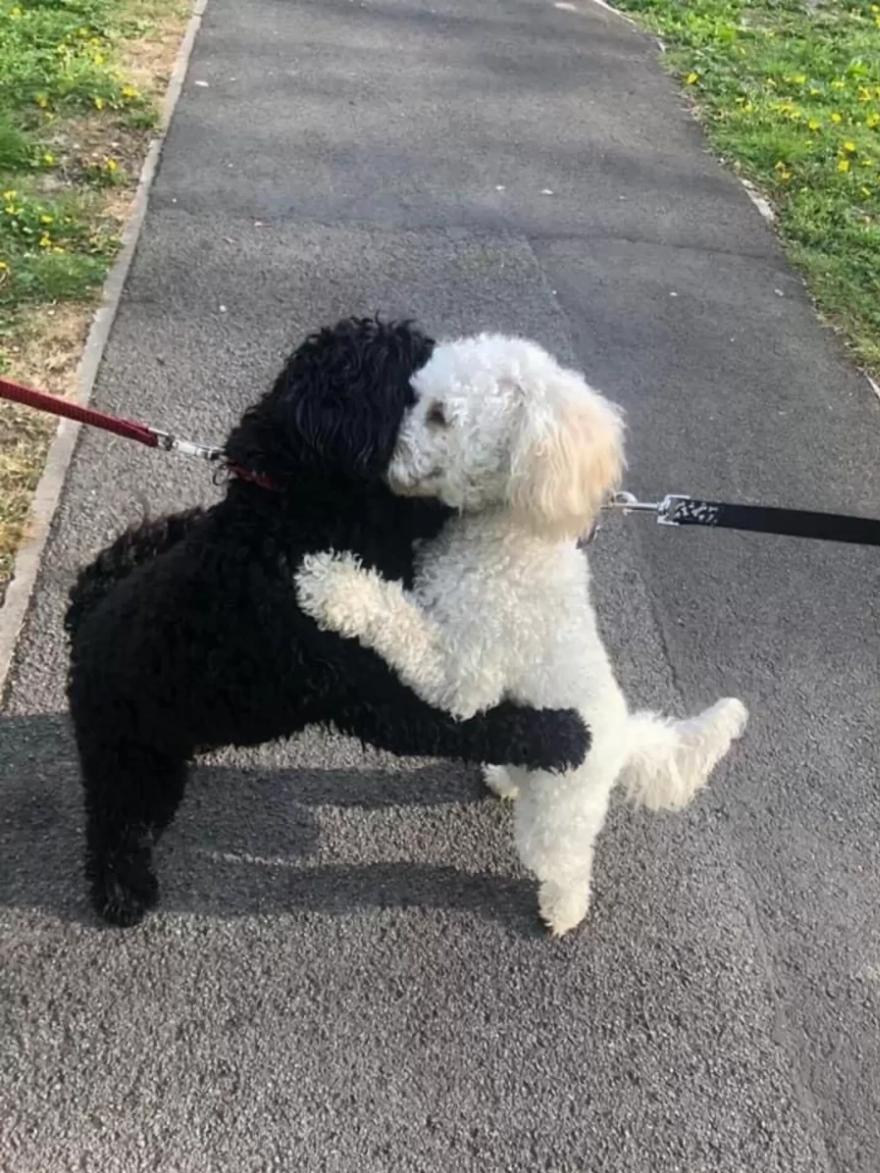 Ο μπαμπάς της περιέγραψε την αξιολάτρευτη τυχαία συνάντηση, γράφοντας: “Λοιπόν, ο Dave έβγαζε βόλτα τον σκύλο του και ένα ζευγάρι περπατούσε προς το μέρος του με μια λευκή εκδοχή του σκύλου του. Αποδείχτηκε ότι είναι αδελφός και αδελφή από την ίδια γέννα. Αλλά αντί απλά να παίζουν όπως κάνουν με τα άλλα σκυλιά, κοιτάξτε αυτό”.