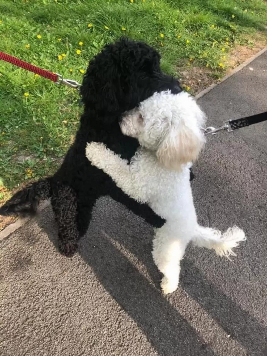 Τα δύο σκυλιά αναγνώρισαν αμέσως το ένα το άλλο. Παρόλο που είχαν να δουν ο ένας τον άλλον από τότε που ήταν κουτάβια – πήγαν για ένα χάδι και μια μεγάλη αγκαλιά μόλις εντόπισαν ο ένας τον άλλον.