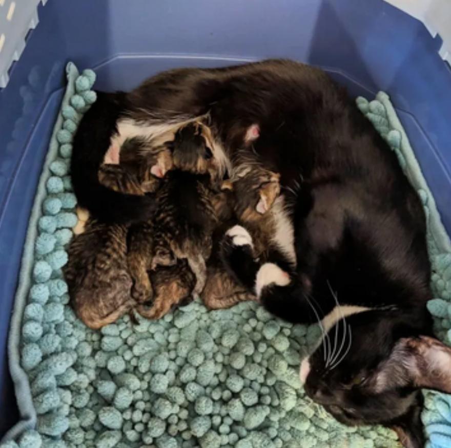Με πέντε γατάκια, η μαμά Caroline έχει πολλή δουλειά να κάνει