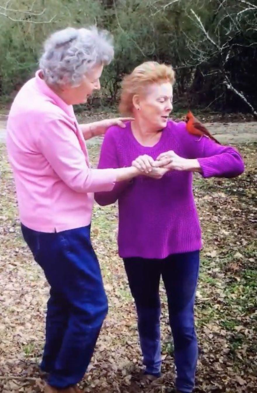 Η Angela Abbott Patteson δημοσίευσε το γλυκό βίντεο με την αντίδραση της οικογένειάς τους στο πουλί και την περίεργη αλλά ευπρόσδεκτη επίσκεψη του πουλιού. Σε αυτό, μια κόκκινη καρδερίνα προσγειώνεται στον ώμο μιας γυναίκας και αρνείται να φύγει. Ακόμα και όταν το διώχνουν, το πουλί επιστρέφει για να κάτσει στον ώμο της.