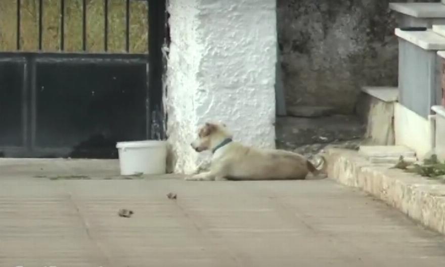 Στο σκυλάκι, που δεν φεύγει από το νεκροταφείο, δίνουν τροφή και νερό οι κάτοικοι του χωριού.