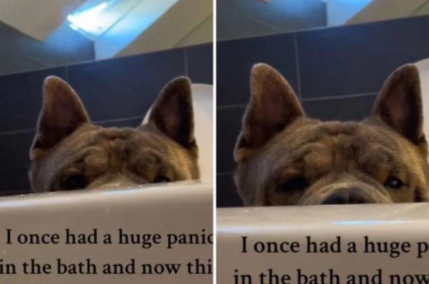 Η ιδιοκτήτρια έγραψε στο βίντεο της Κυριακής στο TikTok, το οποίο αναρτήθηκε στον λογαριασμό @yogibearthebullchow, ότι “κάποτε έπαθε κρίση πανικού στο μπάνιο” και από τότε, το μίγμα chow bulldog της που ονομάζεται Yogi αρνείται να φύγει από το πλευρό της. Τα μάτια του παραμένουν πάντα στραμμένα πάνω της, ειδικά όταν βρίσκεται στην μπανιέρα.