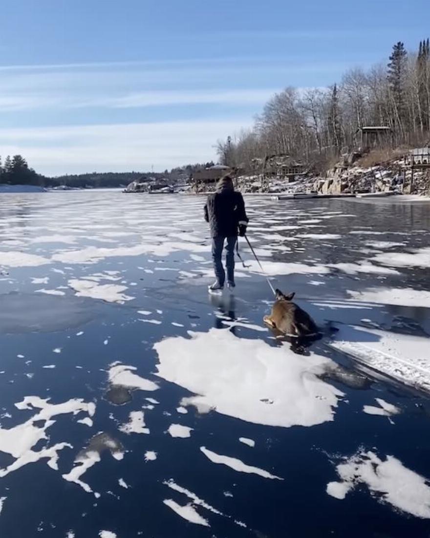 Ο Jayden Belanger και ο Shayne Mozdzen είχαν βγει για ψάρεμα στον πάγο στην Kenora του Οντάριο όταν εντόπισαν ένα ελάφι στον πάγο. “[Ε]βρεθήκαμε μπροστά σε ένα ελάφι που είχε πέσει από έναν γκρεμό και δεν μπορούσε να σταθεί στον πάγο ή να κατέβει”, έγραψε ο Belanger στο κανάλι ViralHog στο YouTube.