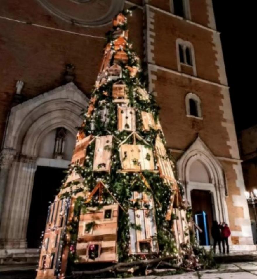 Το δέντρο, παραγγελία του πολιτιστικού συλλόγου A Cuperte de Natale, στην πραγματικότητα δεν είναι καθόλου δέντρο. Είναι μια συλλογή από μικροσκοπικά ξύλινα σπιτάκια, σχεδιασμένα για να αντιπροσωπεύουν την αλληλεγγύη της πόλης που έμεινε στο σπίτι για να επιβραδύνει την εξάπλωση του COVID-19.