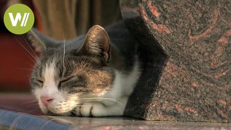 Η γάτα αρνείται να πάει σε νέο σπίτι και παίζει στο χώμα δίπλα στην ταφόπλακα της πρώην ιδιοκτήτριάς της.