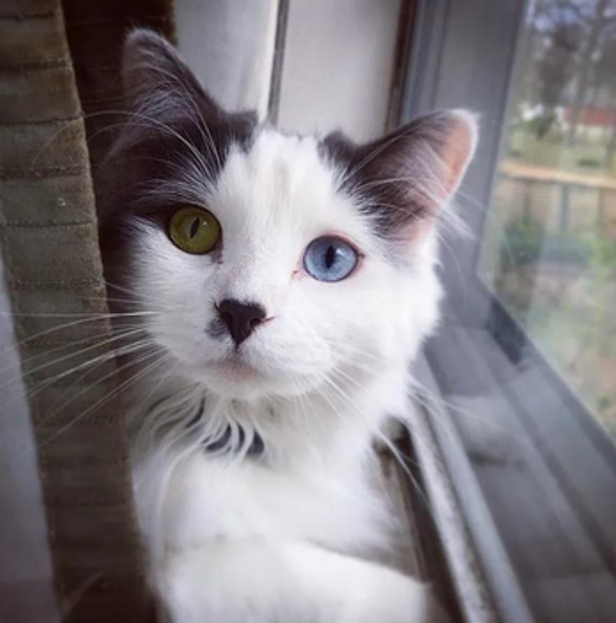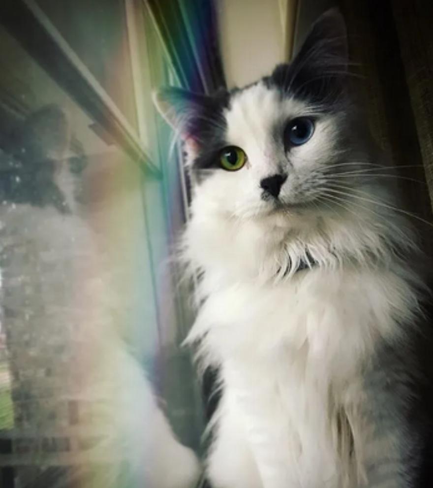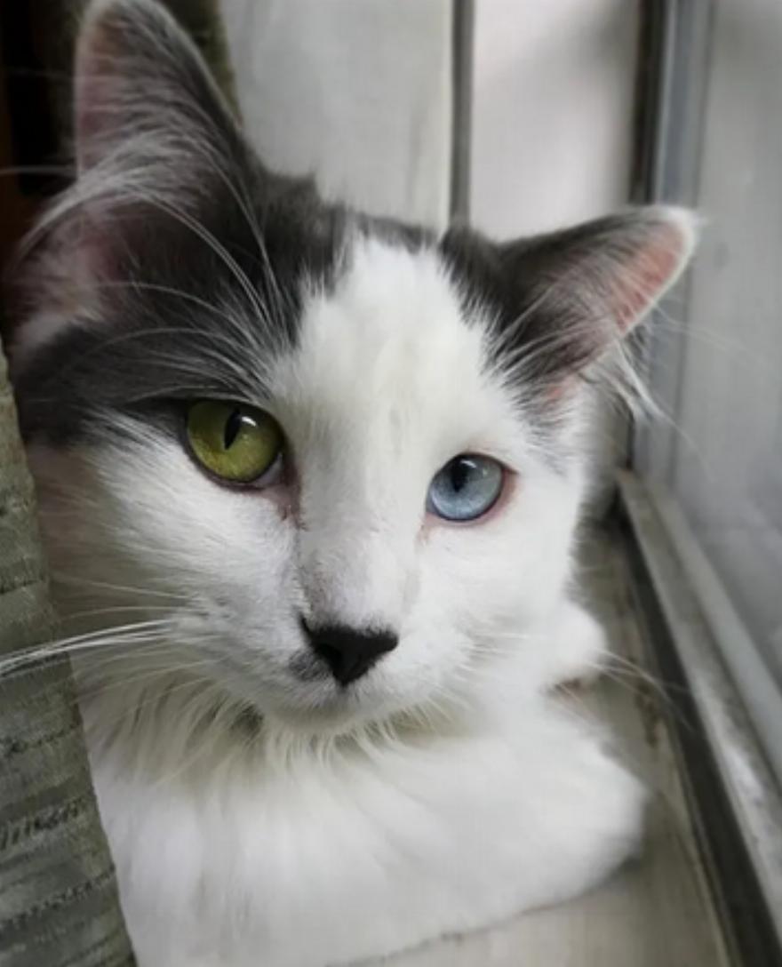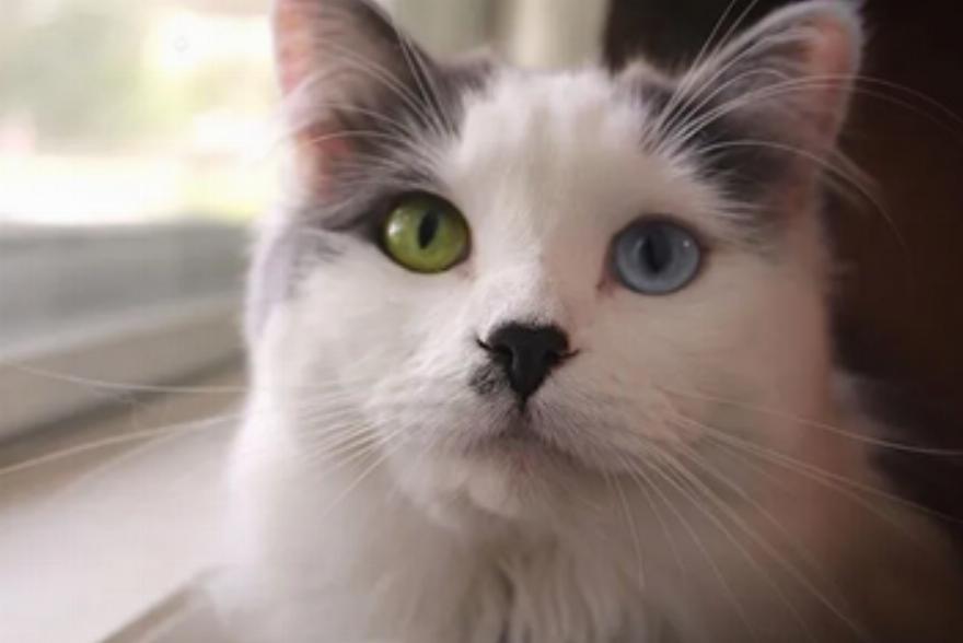 Έχει περάσει λίγο παραπάνω από ένας χρόνος από τότε που βρήκαν τη Fluffy. Έχει γίνει μια πανέμορφη γάτα με όμορφα μπλε και κίτρινα μάτια της.