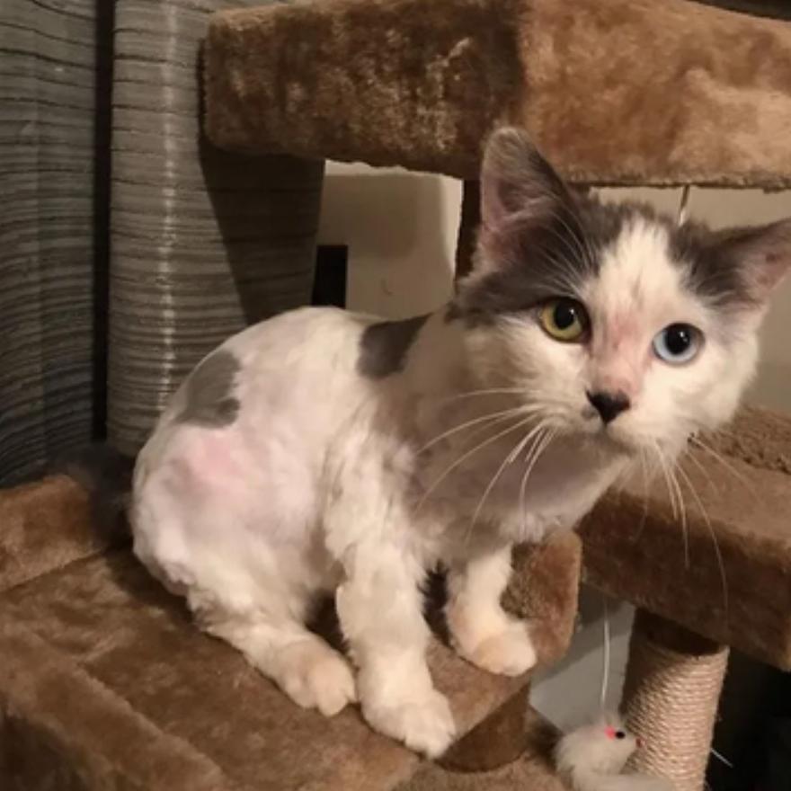 Τις επόμενες ημέρες, περιποιήθηκαν το γατάκι και την κούρεψαν για να αφαιρέσουν όλους τους κόμπους.