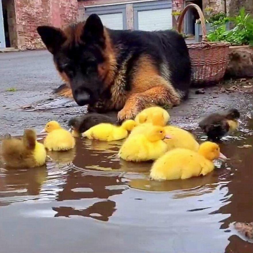Η Neptune ο γερμανικός ποιμενικός είναι ένα δημοφιλές κατοικίδιο στη γειτονιά της στο St Martin’s της Σκωτίας. Έχει μια αδιαμφισβήτητη αδυναμία στα παιδιά και τα μικροσκοπικά ζωάκια και περνάει τον περισσότερο χρόνο της παρέα με τις κότες, τις πάπιες και τις γάτες στο αγρόκτημα της οικογένειάς της. Η οικογένεια υποδέχτηκε πρόσφατα μια νέα φουρνιά παπάκια, με αποτέλεσμα ο Ποσειδώνας να δελεαστεί όσο ποτέ άλλοτε!