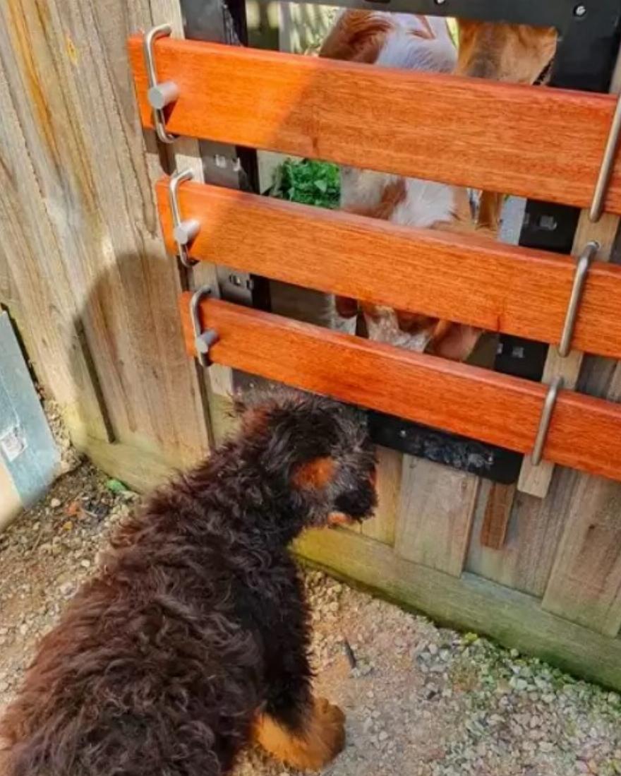 Όταν οι γείτονες της Joyce υιοθέτησαν ένα κουτάβι τεριέ Airedale με το όνομα Wynston, οι τρύπες στον φράχτη έγιναν λίγο μεγαλύτερες.