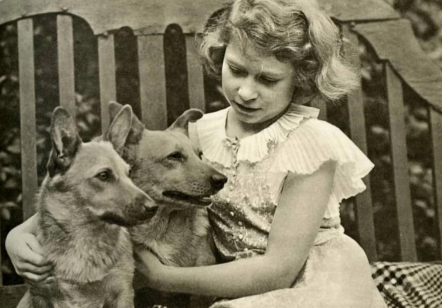 Η πριγκίπισσα Ελισάβετ με τα δύο πρώτα Pembroke Welsh Corgis που εντάχθηκαν στον οίκο των Ουίνδσορ, την Dookie και την Jane το 1936.
