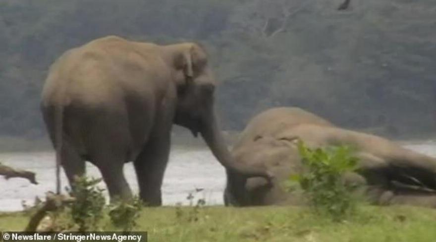 Μπορείτε να δείτε στο παρακάτω βίντεο μερικούς ελέφαντες να προσπαθούν να αγκαλιάσουν με τους κορμούς τους τον αρχηγό τους, που δολοφονήθηκε από έναν αντίπαλο! Οι μάρτυρες ισχυρίζονται ότι είδαν σχεδόν 300 ελέφαντες να συγκεντρώνονται για να αποχαιρετήσουν τον νεκρό!